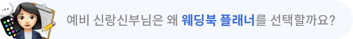 결혼 준비 전문가 웨딩북 웨딩 플래너가 두 분의 스타일, 예산, 혜택까지 완벽하게 고려하여 스드메 브랜드를 1:1 커스터마이징 해드릴게요.
